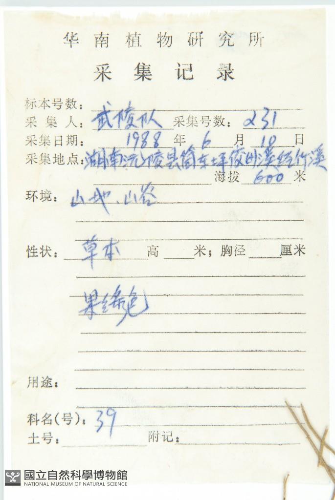Collector:S. S. Lai & H. R. Shan
