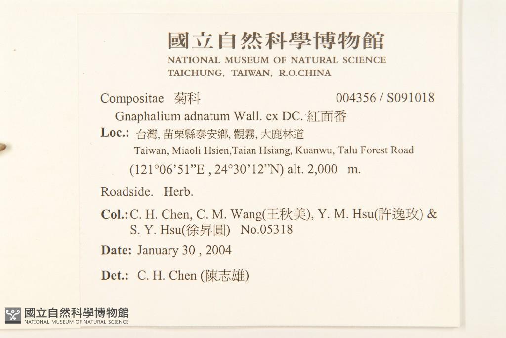 Collector:Chih-Hsiung Chen (陳志雄), Chiu-Mei Wang (王秋美), Yi-Mei Hsu (許逸玫), & al.