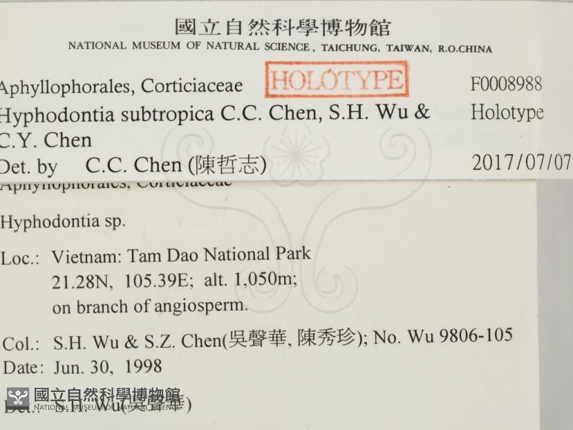Hyphodontia subtropica C.C. Chen, S.H. Wu & C.Y. Chen