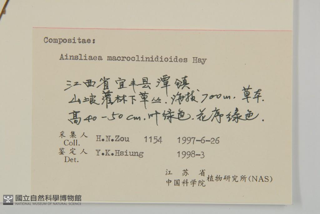 Scientific Name: Ainsliaea macroclinidioides Hayata