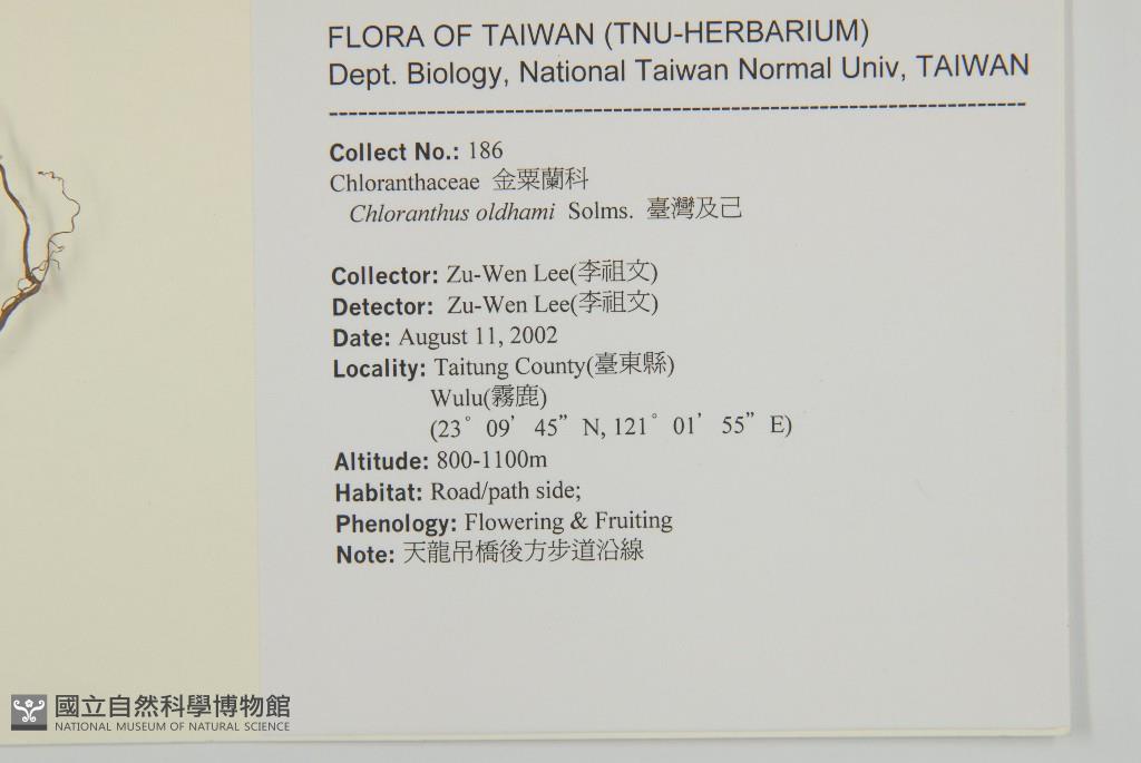 Scientific Name: Chloranthus oldhamii Solms.