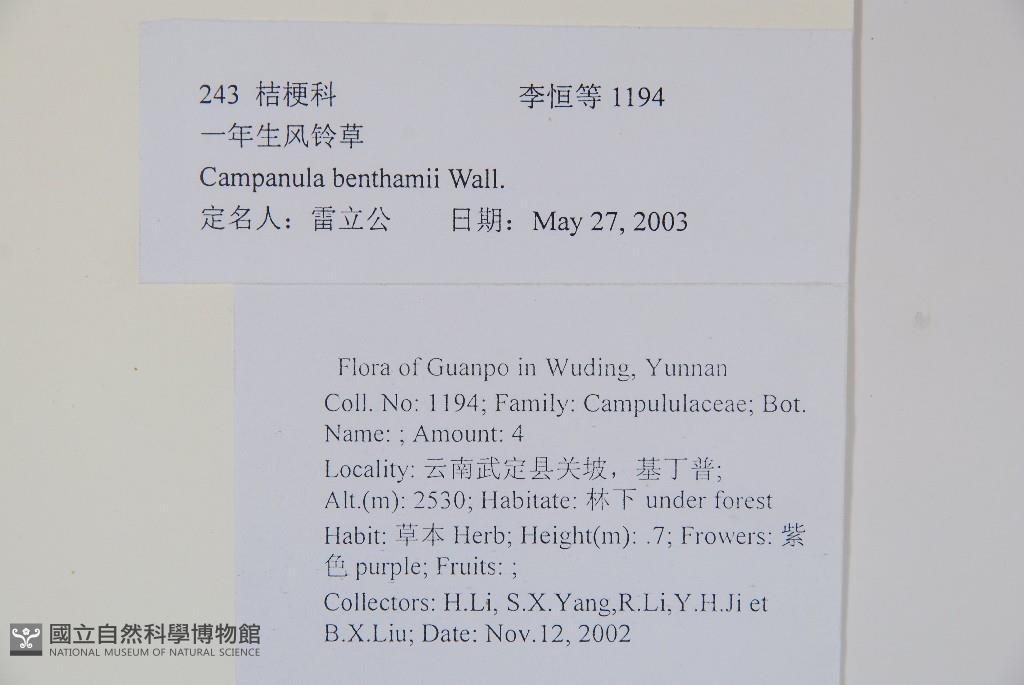 Scientific Name: Campanula benthamii Wall.