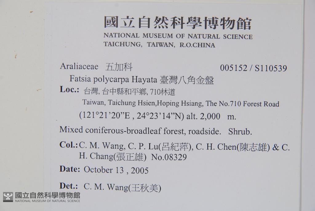 Collector:Chiu-Mei Wang (王秋美),Chi-Ping Lu (呂紀萍), Chih-Hsiung Chen (陳志雄) & al.