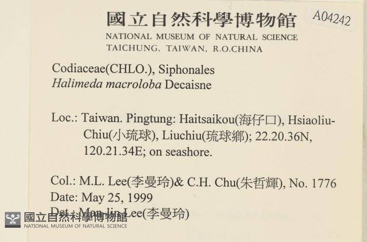 Collector:M. L. Lee, C. H. Chu (李曼玲, 朱哲輝)