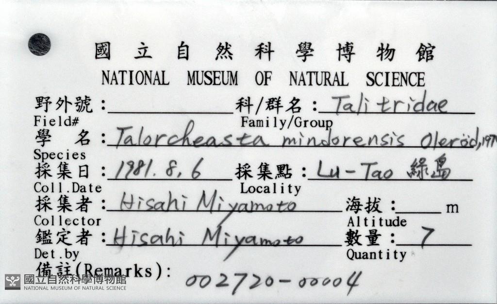 Scientific Name:Talorcheasta mindorensis Olerod,1970