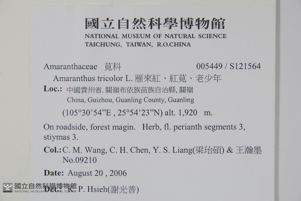 Collector:Chiu-Mei Wang (王秋美),Chih-Hsiung Chen (陳志雄), Yi-Shuo Liang (梁珆碩) & al.