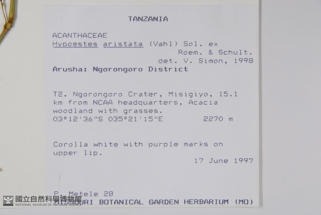 Scientific Name: Hypoestes aristata (Vahl) Roem. & Schult.