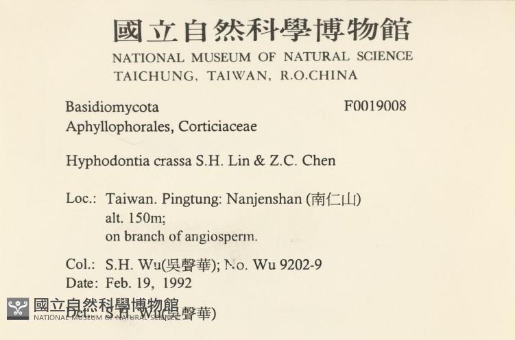Hyphodontia crassa S.H. Lin & Z.C. Chen