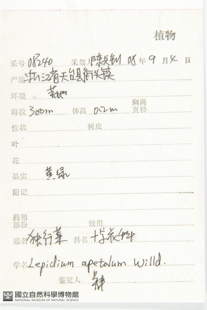 Scientific Name: Lepidium apetalum Willd.