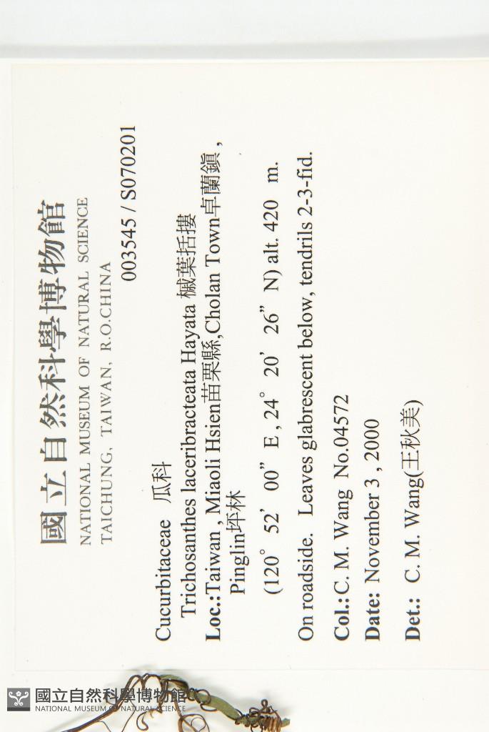 Scientific Name: Trichosanthes laceribracteata Hayata