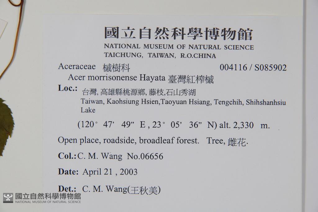 Scientific Name: Acer morrisonense Hayata