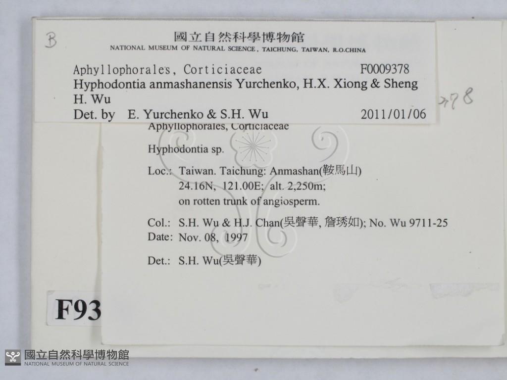 Hyphodontia anmashanensis Yurchenko, H.X. Xiong & Sheng H. Wu