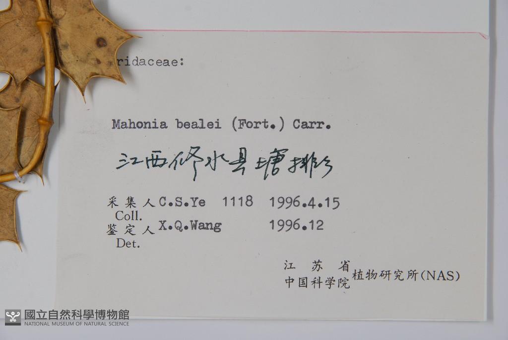 Scientific Name: Mahonia bealei (Fort.) Carr.