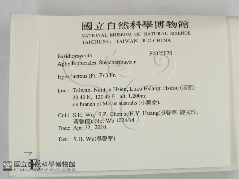 Phylum:Incertae sedis,Agaricomycetes ,Polyporales ,Irpicaceae