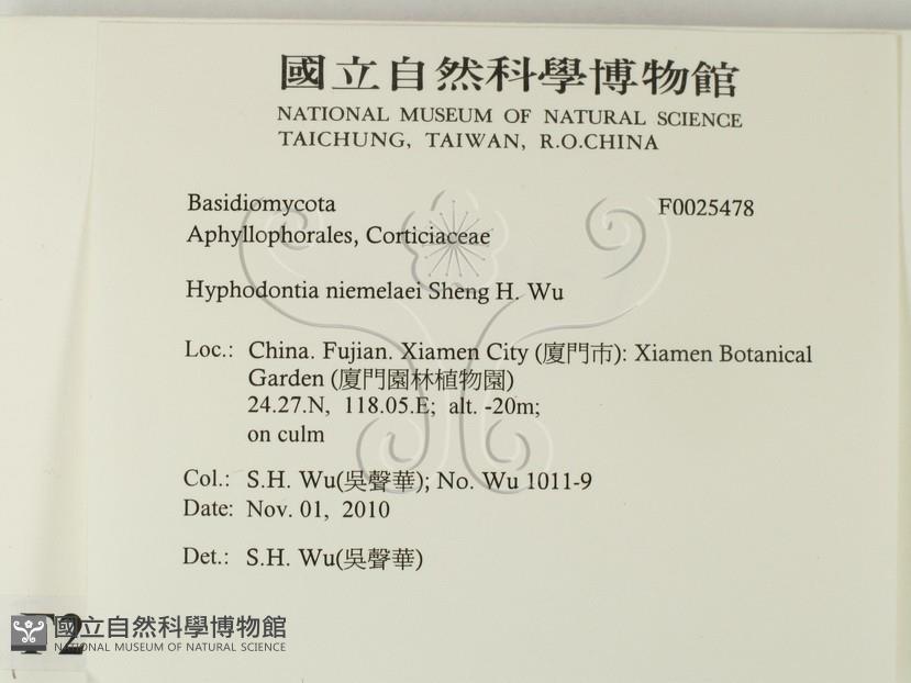 Hyphodontia niemelaei Sheng H. Wu