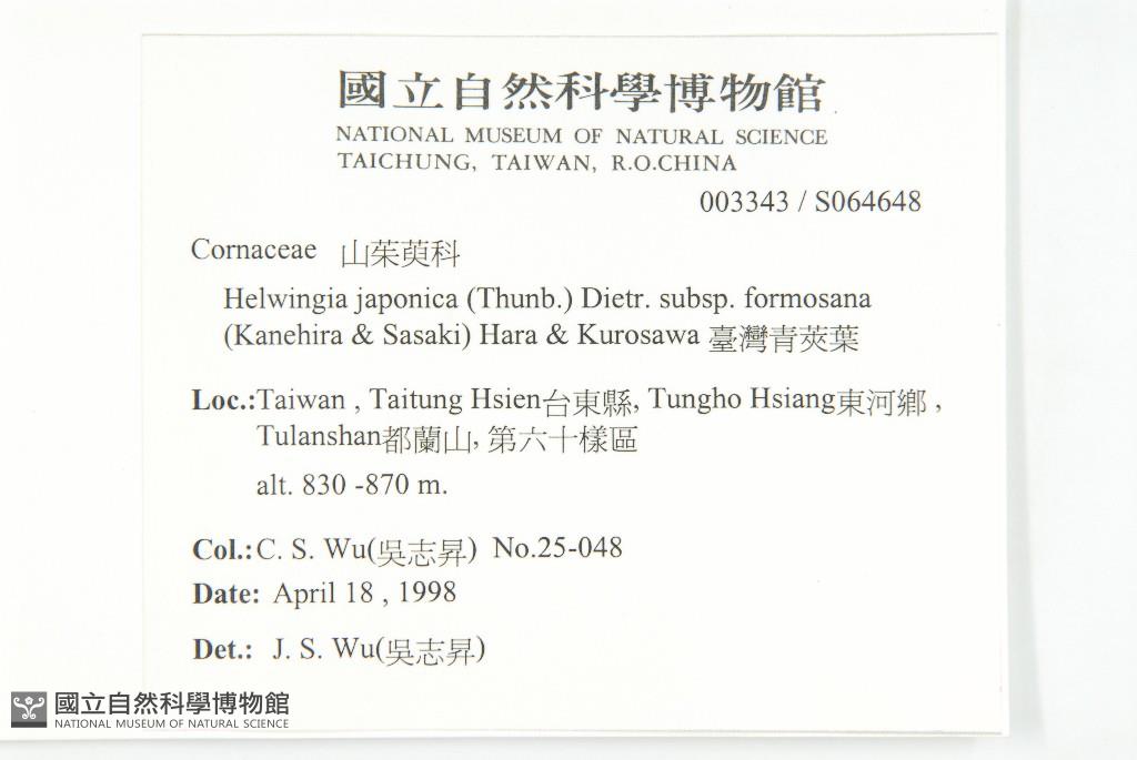 Scientific Name: Helwingia japonica (Thunb.) Dietr. subsp. formosana (Kanehira & Sasaki) Hara & Kurosawa