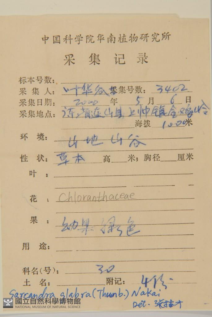 Collector's No.:葉?3402