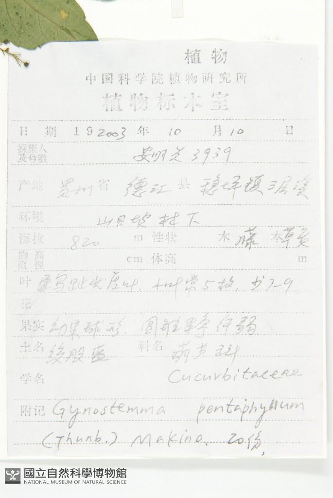 Scientific Name: Gynostemma pentaphyllum (Thunb.) Makino