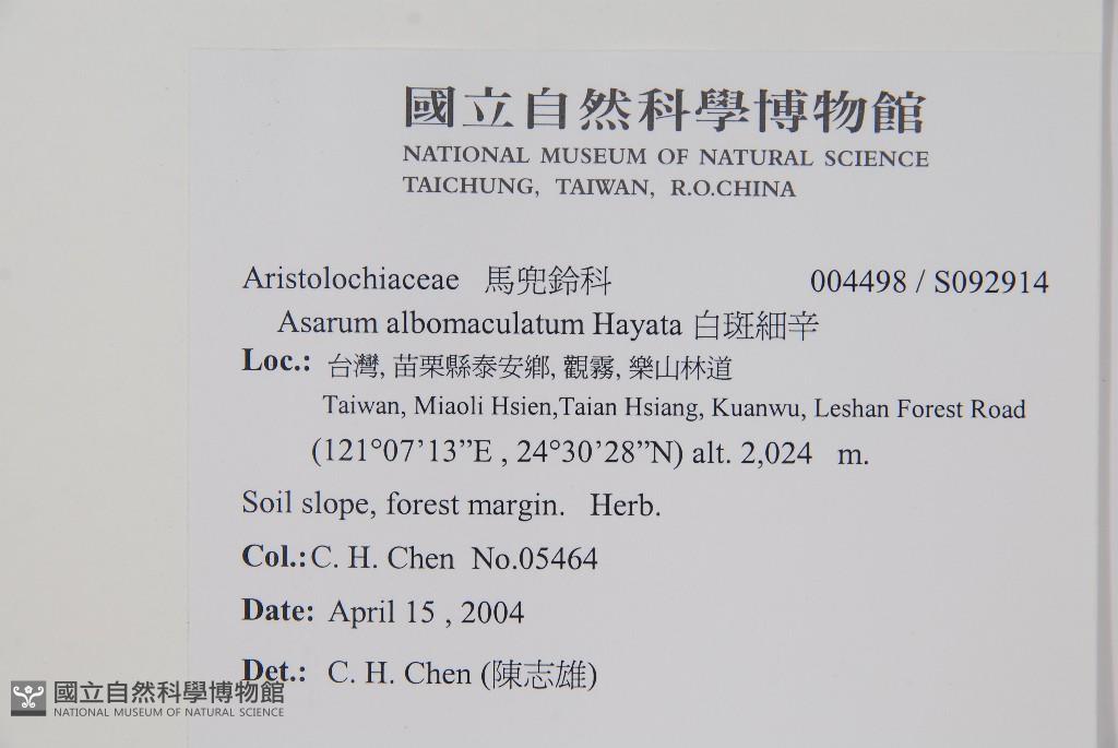Scientific Name: Asarum albomaculatum Hayata