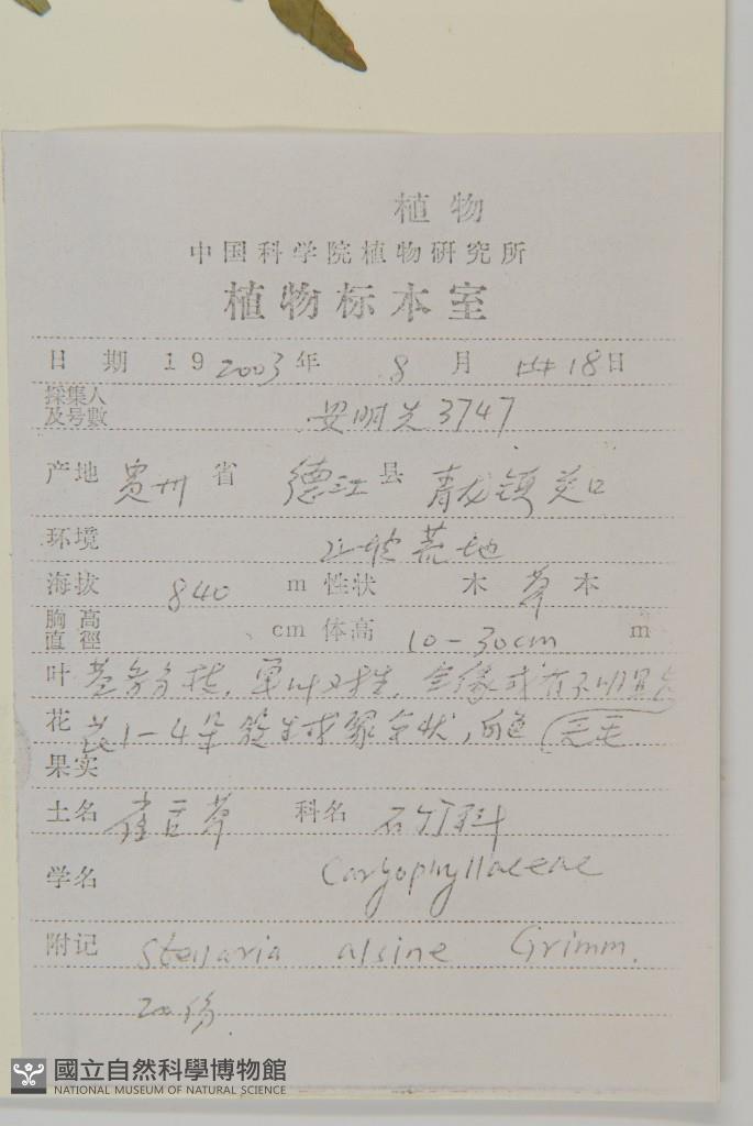 Collector's No.:03747