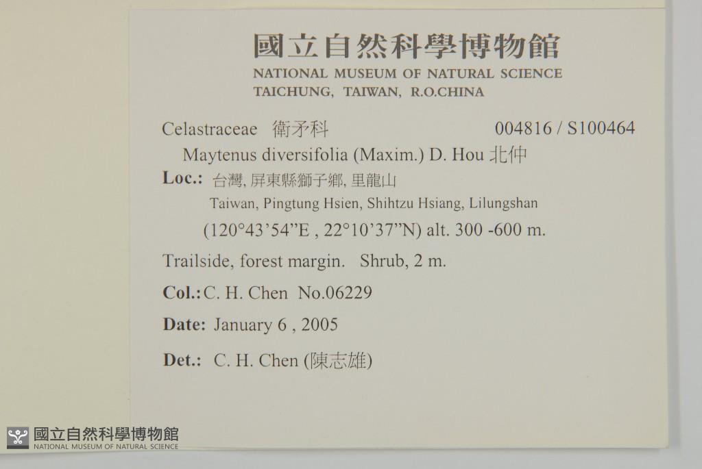 Scientific Name: Maytenus diversifolia (Maxim.) D. Hou