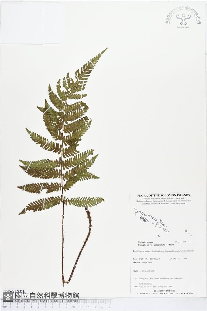 Scientific Name: Coryphopteris subbipinnata Holttum