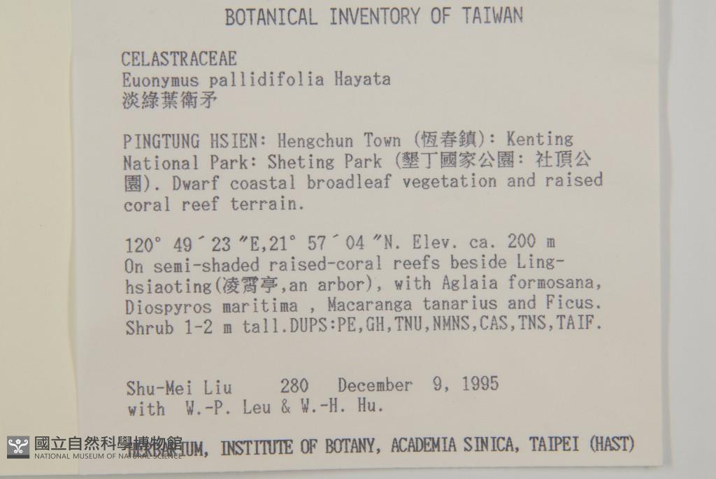 Collector:S. M. Liu, W. P. Leu & W. H. Hu