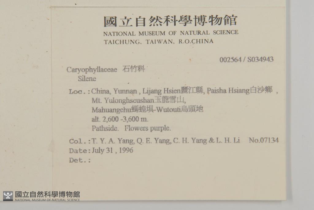 Collector:T. Y. A. Yang, Q. E. Yang, C. H. Yang & L. H. Li