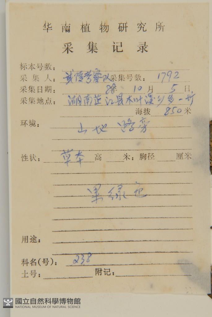 Collector's No.:武01792