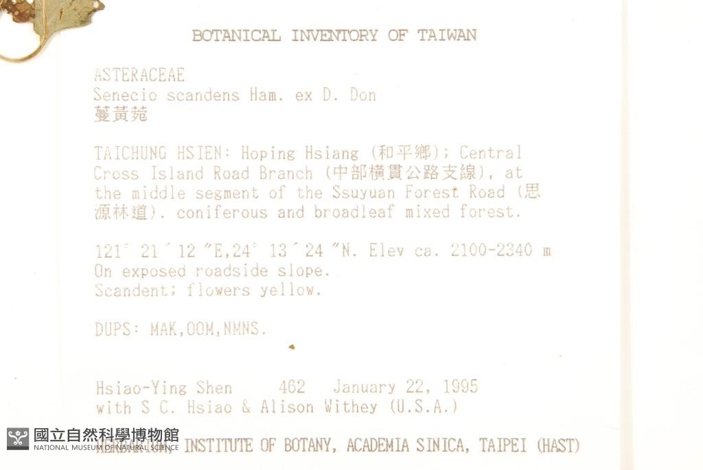 Collector:H. Y. Shen, S. C. Hsiao & Alison Withey