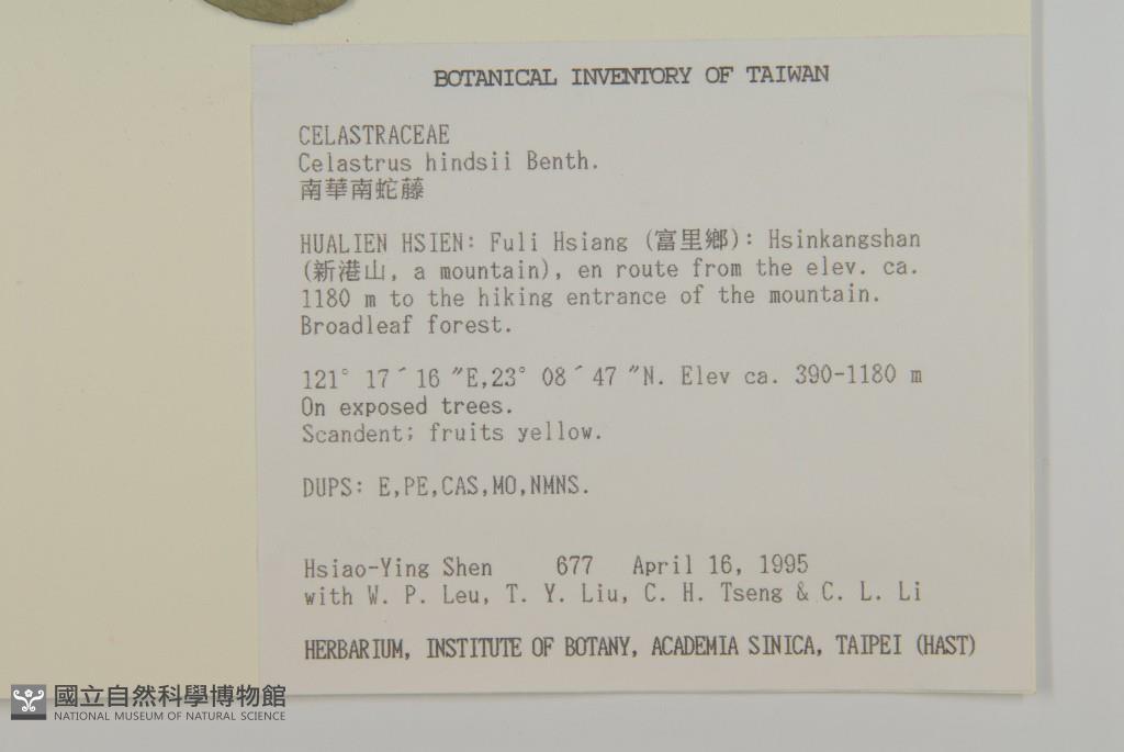 Collector:H. Y. Shen, W. P. Leu, T. Y. Liu, C. H. Tseng & C. L. Li
