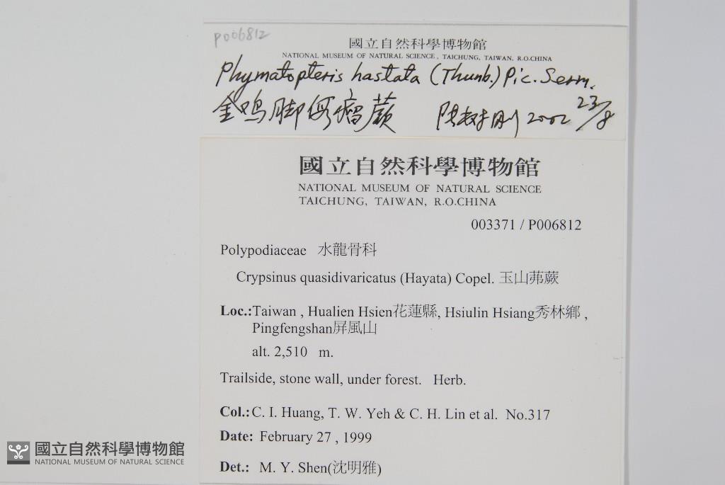 Scientific Name: Phymatopteris hastata (Thunb.) Pic. Ser.