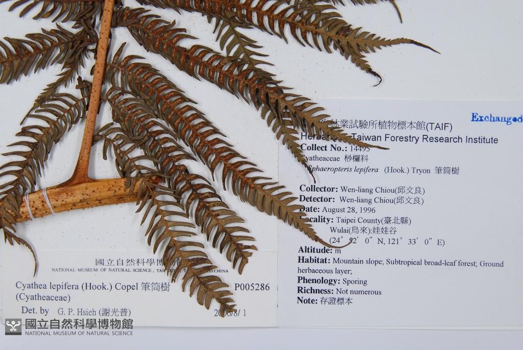 Scientific Name: Cyathea lepifera (J. Sm.) Copel.