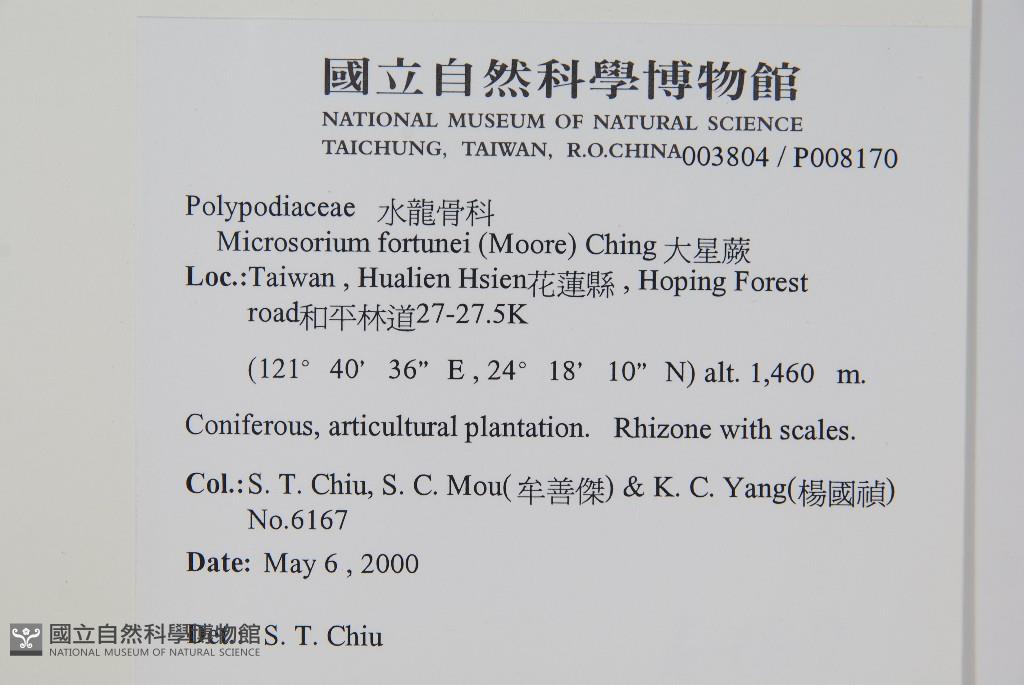 Collector:S. T. Chiu, S. C. Mou(牟善傑) & K. C. Yang(楊國禎)
