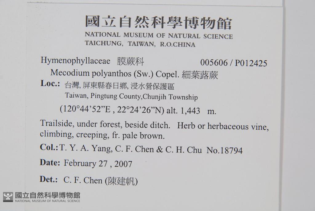 Scientific Name: Mecodium polyanthos (Sw.) Copel.