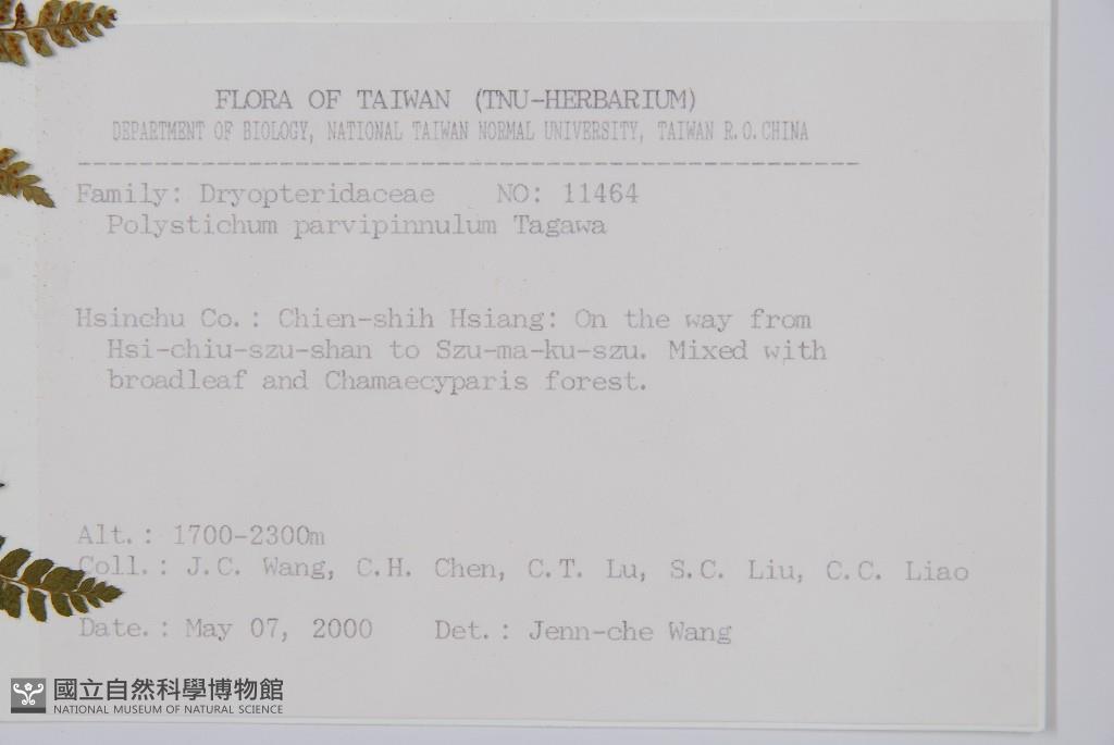 Collector:Jenn-Che Wang (王震哲), Chih-Hsiung Chen (陳志雄), Chang-Tse Lu (呂長澤) & al.
