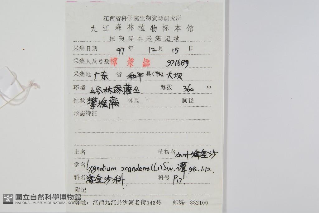 Scientific Name: Lygodium scandens (Linn.) Sw.