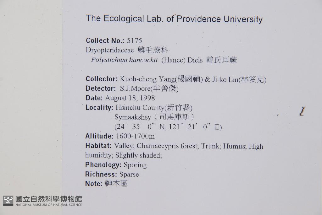 Scientific Name: Polystichum hancockii (Hance) Diels