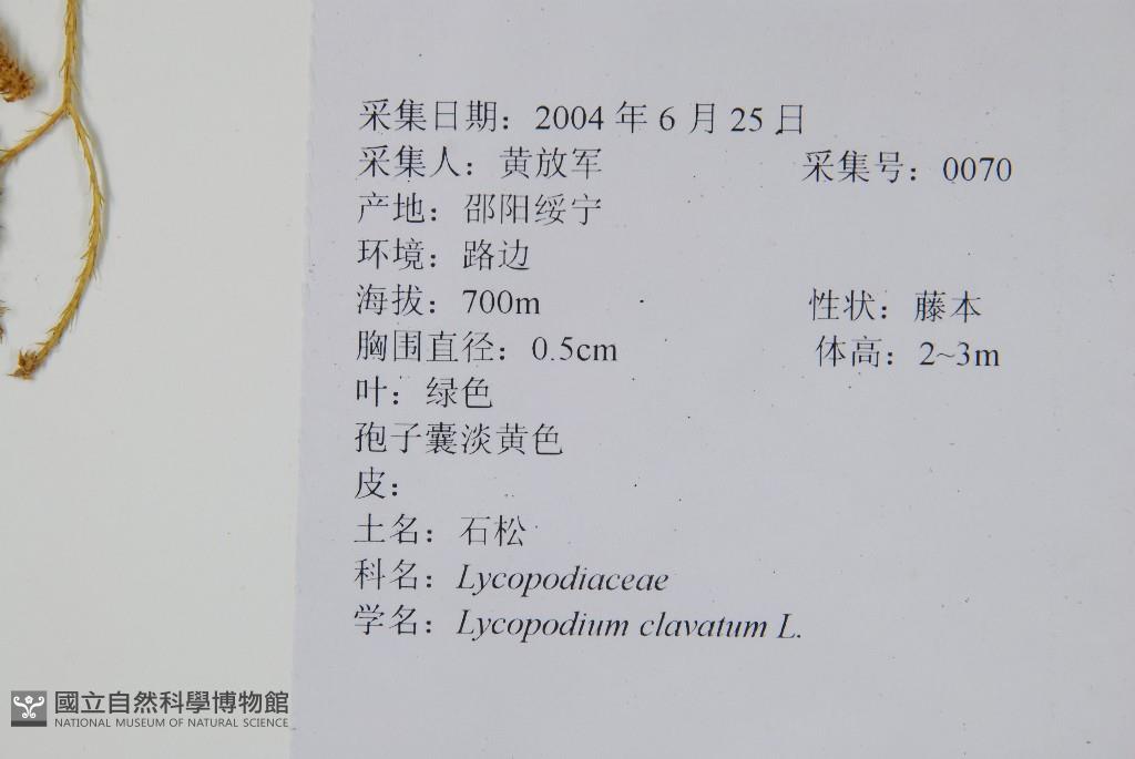 Scientific Name: Lycopodium clavatum L.