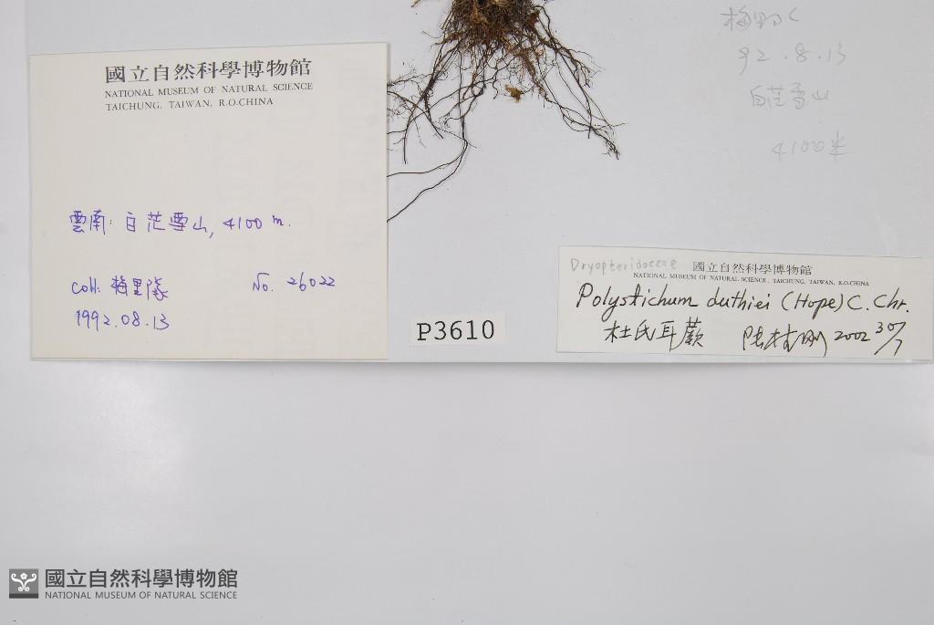 Scientific Name: Polystichum duthiei (Hope) C. Chr.