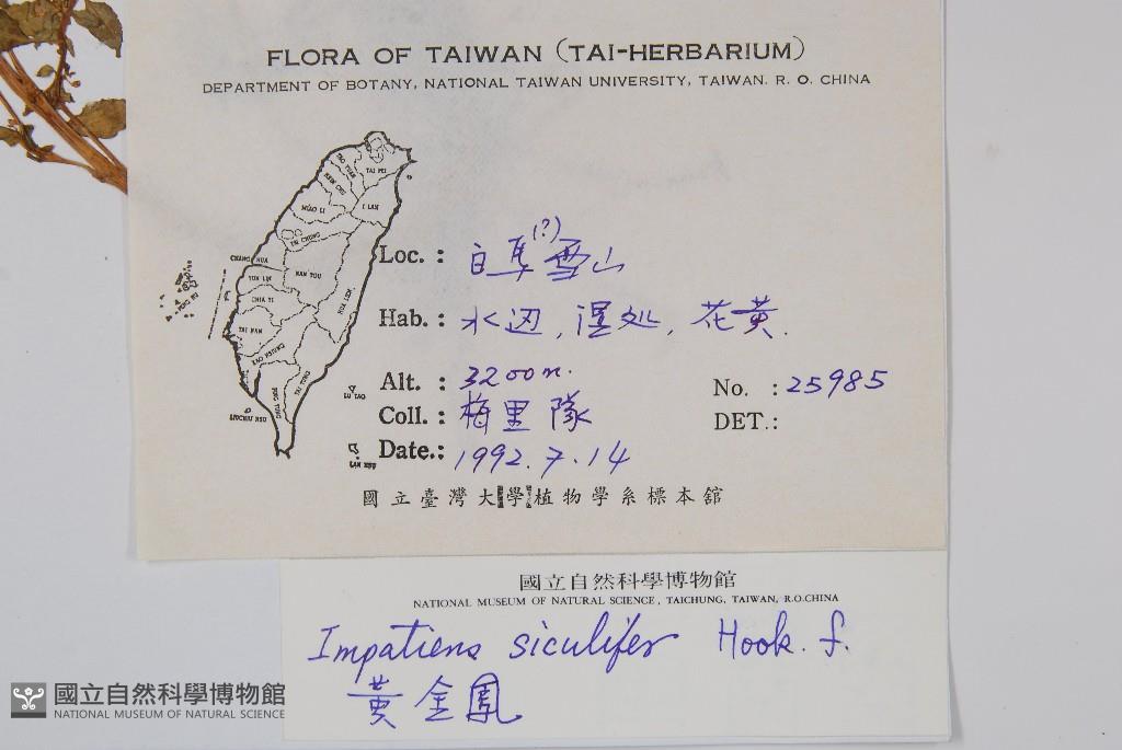 Scientific Name: Impatiens siculifer Hook. f.
