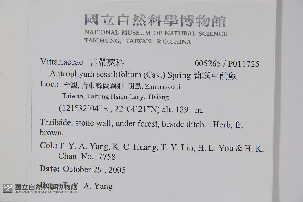 Scientific Name: Antrophyum sessilifolium (Cav.) Spring