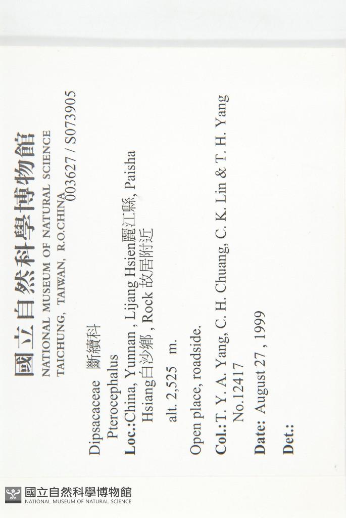Collector:T. Y. Aleck Yang (楊宗愈), Chen-Hsing Chuang (莊振興), Chung-Kang Lin (林仲剛), & al.