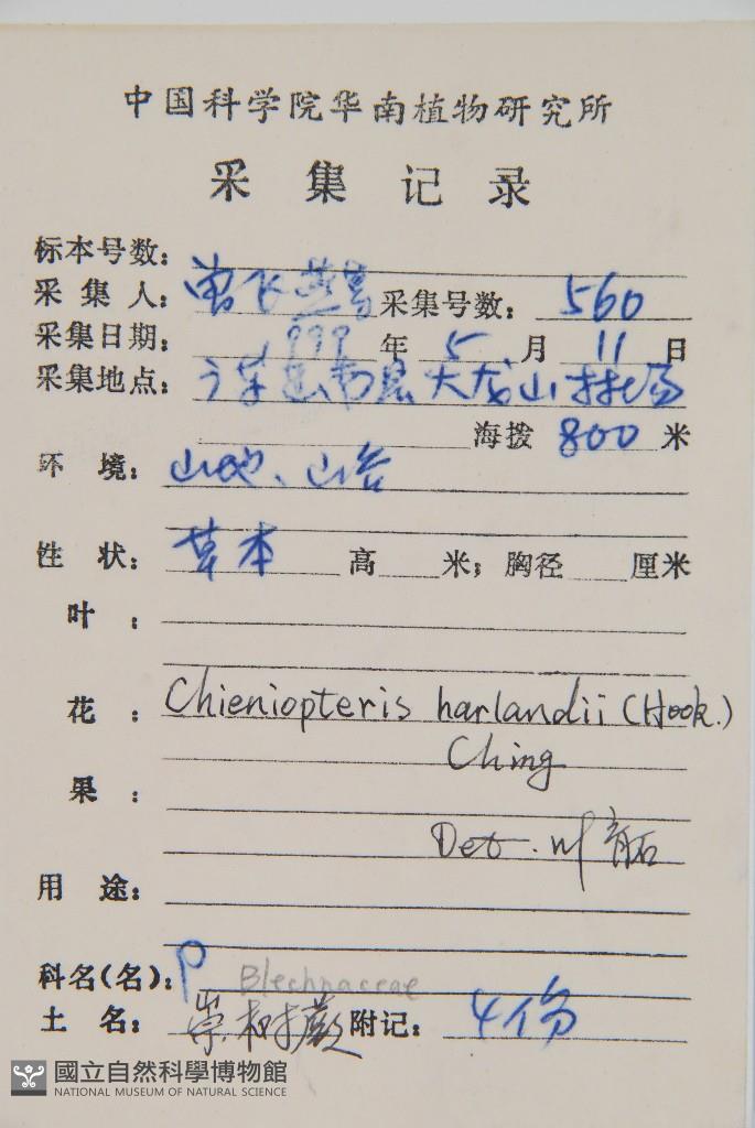 Scientific Name: Chieniopteris harlandii (Hook.) Ching
