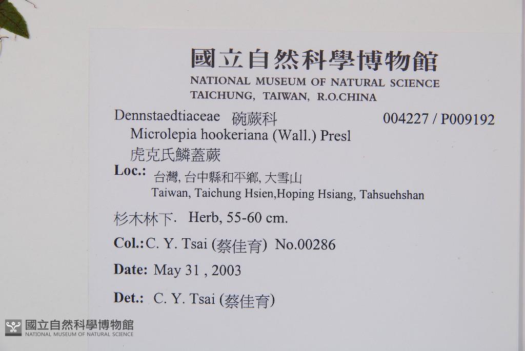 Scientific Name: Microlepia hookeriana (Wall. ex Hook.) Presl