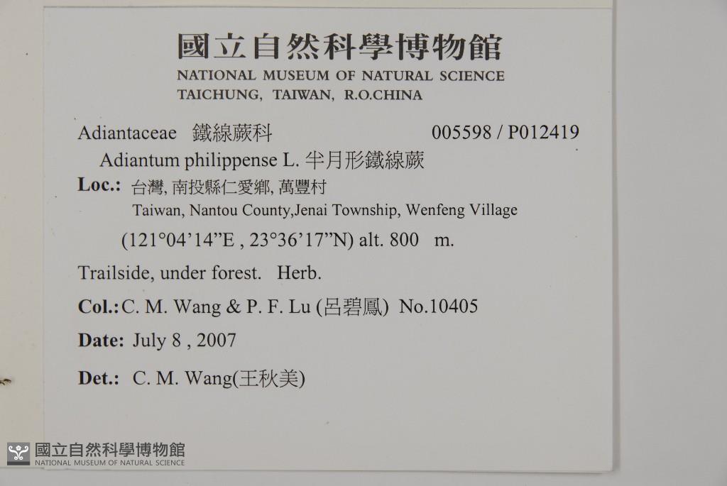 Collector:Chiu-Mei Wang (王秋美), & Pi-Fong Lu (呂碧鳳)