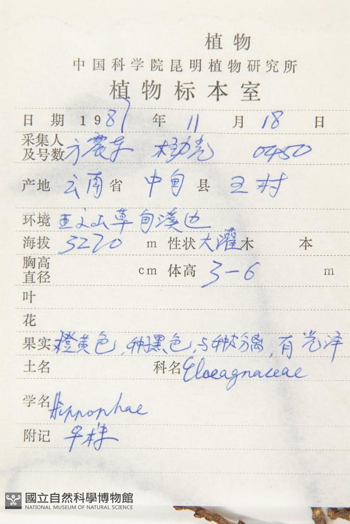 Scientific Name: Hippophae rhamnoides L. subsp. yunnanensis Rousi