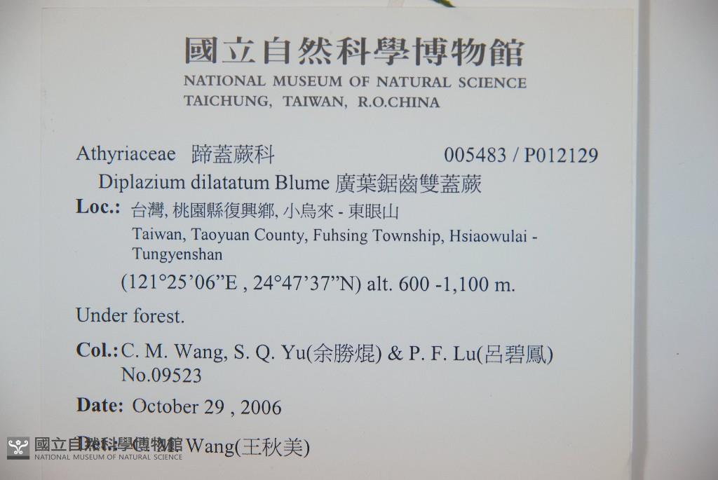 Collector:C. M. Wang, S. Q. Yu(余勝焜) & P. F. Lu(呂碧鳳)