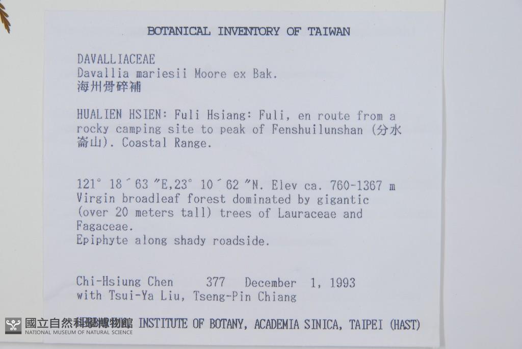 Collector:Chih-Hsiung Chen (陳志雄), Tsui-Ya Liu (劉翠雅), & Tsen-Pin Chiang (江增彬)