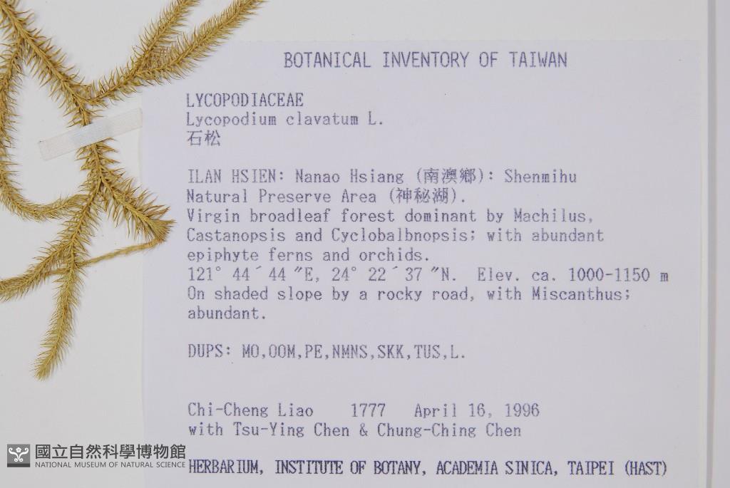 Collector:C. C. Liao, T. Y. Chen & C. C. Chen